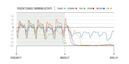 Das Interessante an den Daten für das Schwimmen ist gemäss Garmin, dass der Rückgang der Aktivität mit der im Land eingeführten Ausgangsbeschränkungen einhergeht. Als jedes Land seine spezifischen Stay-Home-Anordnungen bekannt gegeben hat, haben die Schwimmer aufgehört zu schwimmen. Nur in Schweden hätten die lockereren Ausgangsbeschränkungen zu einem viel geringeren Rückgang der Aktivität geführt.