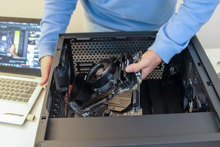 Der grobe Fahrplan von Max lautet: Motherboard auspacken, Prozessor und seinen Lüfter anbringen und RAM aufstecken. Dann geht es mit dem Gehäuse weiter: SSD einbauen, Lüfter festschrauben, Motherboard und Grafikkarte einbauen und zum Schluss die Stromversorgung anschließen.