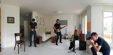 Mit dem Clone-Me-Pano kannst du dich mehrfach im gleichen Bild darstellen. Die App nimmt drei Einzelbilder nebeneinander auf. Sofern du dich nicht genau am Bildübergang aufstellst, kommt das einwandfrei heraus.