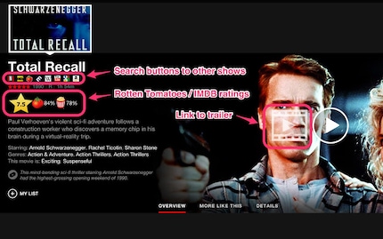 Ein kleiner Tipp für Netflix-Nutzer: Holt euch die Chrome-Erweiterung Flix Plus. Sie ergänzt Film- und Serien-Infos mit IMDB-, Rotten-Tomatoes-Wertungen und sonstigen praktischen Links. Ausserdem kann man sich auch direkt YouTube-Trailer reinziehen. Wirklich äussersts praktisch.