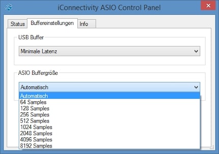 In den Einstellungen deines ASIO-Treibers kannst du die Grösse des Buffers einstellen. Je kleiner der Buffer, desto geringer die Latenz. Wenn der Buffer allerdings zu klein ist, fängt der Sound an zu knacken und zu knistern. Je leistungsfähiger dein PC, desto geringer darf der Buffer sein. Moderne PCs kommen in der Regel mit dem Minimum von 64 Samples gut zurecht.