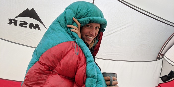 Um effizient zu wärmen, ist der Phantom mumienförmig und relativ eng geschnitten. Je enger er sich anschmiegt, desto weniger Wärme geht verloren und desto weniger Material wird benötigt. Für Touren wie die von Lous und Julen ist dieser Formfaktor die einzig logische Wahl. Die Füsse finden in einer Fussbox Platz. Der Schlafsack wird nach oben breiter und hat einen Wärmekragen. Also eine «Extrawurst» am Hals, die verhindert, dass Wärme entweicht. Dazu kommt eine aus vier Kammern bestehende Kapuze, in die du dich einschnüren kannst und die die Daunen gleichmässig verteilt halten soll. Während Lous und Julen anfangs vor allem bei Hitze unterwegs waren, ging es später hoch bis auf über 5000 Meter über Meer und im Herbst waren frostige Nächte in den Bergen dabei. «Nur auf dem Ararat habe ich nachts etwas gefroren», sagt Lous. «Aber dort hatte es sicher -10 Grad und wir waren sehr hoch oben, das war etwas extrem.» Ausserdem sei sie zu dünn gekleidet gewesen.