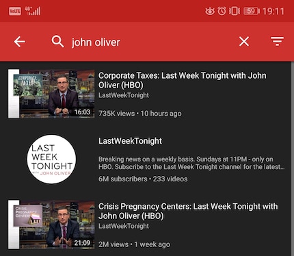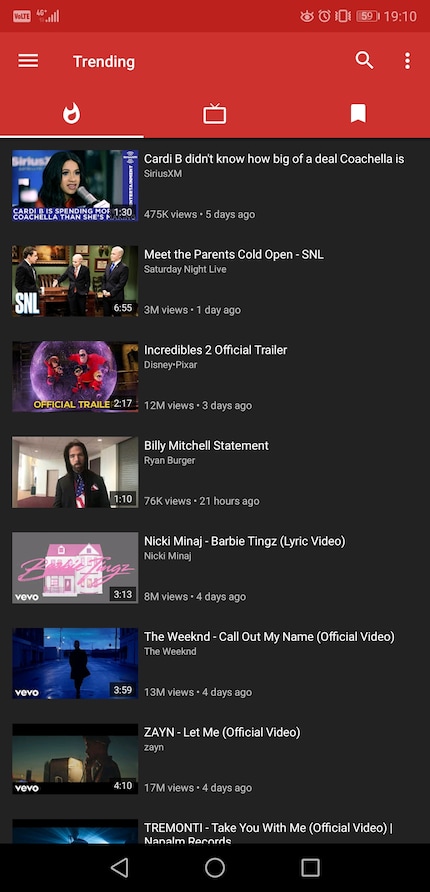 Der Haupbildschirm NewPipesDie App der Gruppe Freiwilliger mit dem passenden Namen Team NewPipe machen viel richtig, das die YouTube App falsch macht. Hauptsächlich aber ist das Teil schnell. Sehr schnell. Da es keine Libraries und anderen Schmu laden muss, der die Datenkrake füttert, geht das alles wesentlich schneller als mit der normalen App.