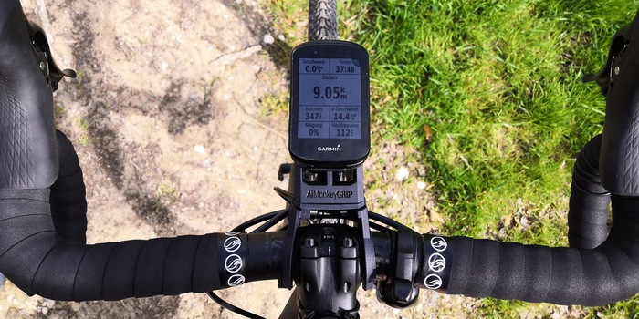 Der AiMonkeyGRIP kommt fertig konfektioniert in recyceltem, naturbelassenem Karton nach Hause, damit die Schrauben und Einzelteile nicht zusätzlich in Plastik verpackt werden müssen. Ausserdem ist er so konzipiert, dass du die vorhandenen Mounts deiner Geräte verwenden kannst. Es passen Gummibänder, O-Ringe, Garmin-Mount, K-Edge-Ersatzmount und GoPro-kompatible Geräte. Ich bin aktuell mit Garmin Edge 530 und dem kompatiblen Varia UT800 ausgestattet. Funktioniert tipptop. Einzig die Montage des Grips ist ein bisschen eine Fummelei, da die Kabel an meinem Giant nicht sehr schön montiert wurden und entsprechend im Weg sind. Ausserdem ist die Vorbaubreite etwas knapp bemessen. Ein 40-Millimeter-Grip würde besser auf meinen 35-Millimeter-Vorbau passen. Irgendwann geht's dann aber doch und das Teil ist montiert.