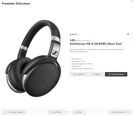 In der Slideshow werden dir Produkte gross präsentiert. Du bekommst einen guten Eindruck davon, wie es aussieht. Die wichtigsten Eigenschaften jedes Produkts sind in Kürze zusammengefasst. Ohne dass du eine Fantastillion Browser-Tabs öffnen musst.