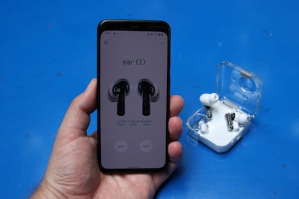 Mit meinem Android-Smartphone sind die Nothing Ear (1) schnell gekoppelt. Wichtig: Für die Kopplung bleiben sie im Gehäuse. Nimmst du sie heraus, klappt es nicht. Anschließend stellen sie eine Verbindung über Bluetooth 5.2 zum Smartphone her, während ich sie aus ihrer Box zu meinem Ohr bewege. Die Ear (1) unterstützen die zwei Audio-Codes AAC und SBC. AptX und LDAC beherrschen sie nicht.