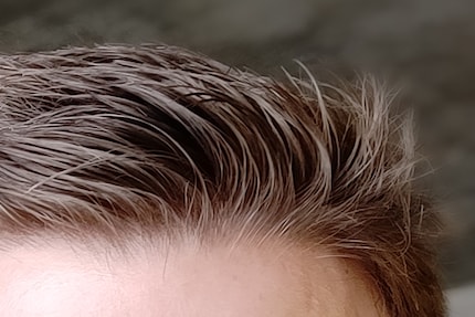 Gerade, wenn ich ranzoome, bemerke ich eine Art Schimmer um meine Silhouette herum. Die verwaschenen Haarspitzen sind hingegen etwas, das so ziemlich überall vorkommt.