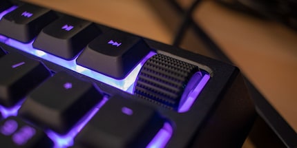 Im Vergleich zur ersten Version der Ornata bietet die V2 neu ein Multifunktions-Drehregler, den du meist für die Lautstärke brauchst und Medientasten. Durch Druck auf den Drehregler stellst du übrigens auch stumm. Er bietet guten Grip, damit du auch in der Eile schnell und präzis leiser oder lauter stellen kannst. Wie die Mecha-Membrane-Switches auch, empfinde ich das Feedback des Rads jedoch als wenig gelungen. Es ist zu wenig exakt. Alle Tasten sind über die Synapse-Software von Razer frei programmierbar. Dort erstellst du benutzerdefinierte Profile, Tastenbelegungen und Makros.