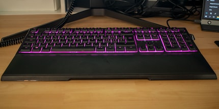 Ich bin zwar kein Fan von RGB, die Chroma RGB-Hintergrundbeleuchtung der Ornata gefällt mir jedoch sehr gut. Das komplette Membran wird gleichmäßig ausgeleuchtet. Es wirkt, als ob die Tasten eine Unterbodenbeleuchtung hätten. Die Beleuchtung kannst du übrigens auch mit der Synapse-Software umstellen.