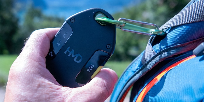 Mit dem HMD OffGrid kannst du via Satellit Nachrichten austauschen, deinen Standort mitteilen und per SOS-Button Hilfe holen. Den Rettungsservice buchst du im Abo mit – allerdings funktioniert das Gerät nicht überall auf der Welt.