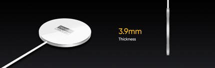 Das wissen wir, weil Realme-Marketing Manager Alessio Bradde das während seiner Präsentation selber zugibt. Deshalb stellt er auch gleich im selben Atemzug den kleineren 15 Watt Wireless Charger vor: Eine sehr dünne Ladeplattform, die auf derselben Magnettechnologie basiert und laut Realme gemacht ist für den «stillen Ladevorgang». Deshalb sei der kleine Charger etwas geeigneter für den «Durchschnittsverbrauch».