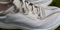 Das Gewebe umschliesst den Fuss wie eine Socke. Die mit dem Obermaterial verbundene Zunge ist leicht gepolstert, um zu verhindern, dass die Schnürsenkel unangenehm einschneiden. Zudem hat der Schuh einen kleinen gestrickten Kragen, der Steinchen und Schmutz fernhält.