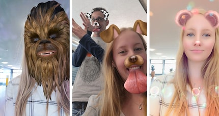 Chewbacca, Hunde oder Beauty-Blasen sind einige der Fotofilter Snapchats.Nebst Bildern kannst du auch Videos aufnehmen und versenden. Eine Aufnahme dauert maximal zehn Sekunden. Genügt dir das nicht, kannst du mehrere Aufnahmen aneinanderreihen und diese einzeln versenden.