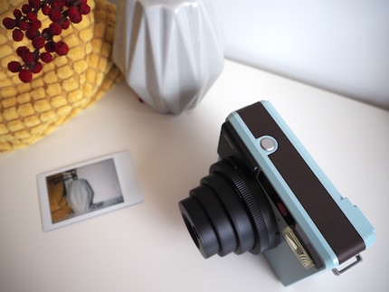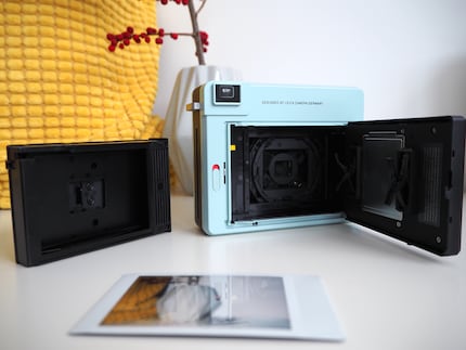 Film einlegen und schon kann es losgehen. Wenn du einen neuen Film einlegst, muss der Akku ganz geladen sein. Du kannst sowohl Leica- als auch Fujifilm-Instax-Mini-Filme benutzen.