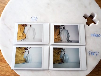 Leica-Filme tauchen dein Motiv in wärmeres Licht. Die Instax-Filme haben den für Fujifilm typischen Blaustich. Das fällt aber nur im direkten Vergleich auf. Und ich muss ehrlich sagen, auch dann fällt es wirklich nur minimal auf. Es gibt aber einige YouTuber, die hier eine kleine Wissenschaft draus machen. Daher wollte ich euch das nicht vorenthalten: Fuji- vs. Leica-Filmpapier Übrigens: Entgegen der landläufigen Meinung, die Bilder müsse man schütteln, damit sie ideal trocken - das brauchst du nicht tun. Einfach hinlegen und warten. Wenn du unterwegs bist, kannst du sie zum trocknen auch halten. Aber Vorsicht: Immer schön am weissen Rand festhalten - halte deinen Finger nicht auf das gerade entstehende Bild (hört sich banal an? Halte mal vier solcher Bilder gleichzeitig ;)).