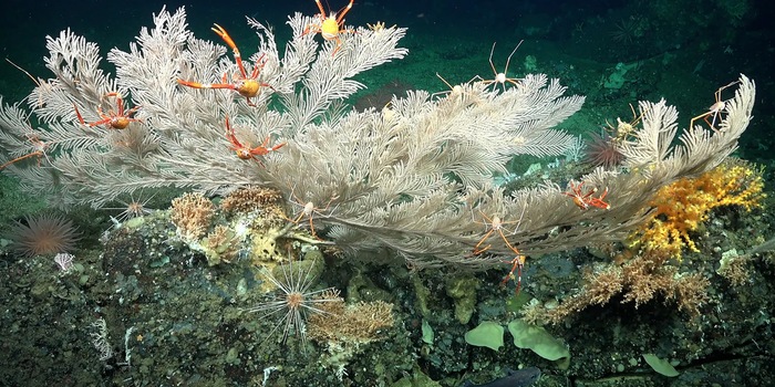 © Schmidt Ocean Institute (Ausschnitt) Tiefseeriffe wie dieses im Galapagos-Archipel sind bislang kaum erforscht, beheimaten aber viele Arten, wie hier zu sehen ist: Korallen, Anemonen, Krabben und Seeigel sind nur ein Teil davon.