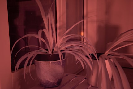 Ich fotografiere zum Testen eine Zimmerpflanze. Kein tolles Foto, aber es zeigt, dass die Kamera als Infrarotkamera zu gebrauchen ist: Die Blätter sind weiss.