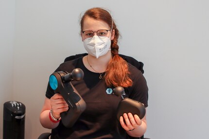 «Ich konnte direkt mit den Massagepistolen loslegen», beschreibt Sophia ihren ersten Kontakt mit den Theraguns. Die beigelegten Anleitungen seien auch für Laien verständlich und die Handhabung insgesamt einfach. Ihr fällt zudem die gute Verarbeitung auf: «Die sehen nicht nur gut aus, sondern fühlen sich auch gut an. Außerdem lassen sie sich leicht desinfizieren. Das ist bei der Arbeit momentan unerlässlich.»