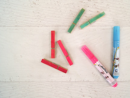 4. Bemale beide Seiten der Wäscheklammer mit zwei unterschiedlichen Farben.