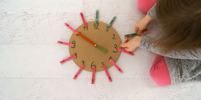 Die Zeiger und Wäscheklammern haben unterschiedliche Farben. Achte darauf, wenn du die Uhr bastelst, denn die Farbcodierung wird deinem Kind das Lernen stark vereinfachen. Lass ausserdem dein Kind mitbasteln. Es kann die Wäscheklammern bemalen und die Zeiger festmachen. Für dein Kind ist die Lernmotivation dadurch noch grösser, da es selber an der Entstehung beteiligt war. Ausserdem lernt es den Aufbau der Uhr praktisch kennen.