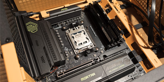 Das Herzstück dieses Builds ist das mATX-Mainboard MSI B850M Mortar WiFi. Die Entscheidung dafür fällt aus drei Gründen. Erstens: Der aktuelle AM5‑Chipsatz bietet genug Zukunftssicherheit, ohne in experimentelle Regionen abzudriften. Zweitens: Der integrierte 5‑Gigabit‑Ethernet‑Port passt perfekt zu einem Linux‑basierten High‑End‑System. Drittens – und nicht zu unterschätzen: Das Board ist schwarz. Zusammen mit dem Jonsplus‑Z20‑Gehäuse mit Glas‑Seitenpanel ergibt das ein stimmiges Gesamtbild, das nicht durch zufällige Farbakzente zerstört wird.