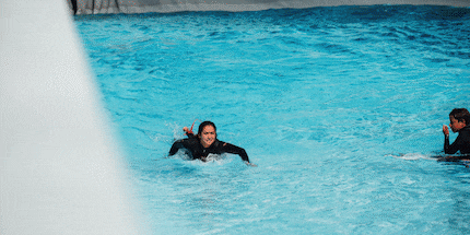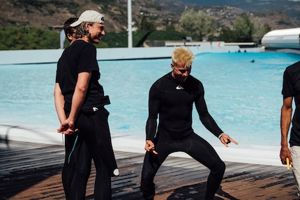 Sobald leibhaftige Wellen durch den Pool rollen, verwandelt sich die Atmosphäre. Ich spüre es schon im Gebäude. Als das grosse Rauschen beginnt, drehen sich die Köpfe zum Fenster, der Pressepulk stolpert hastig die Treppe hinunter nach draussen. Augen zu, schon beamt mich das Kopfkino ans Meer. Die Gewalt des Wassers übertönt die Autobahn und spült alles, was ablenkt, aus dem Sinn. Nichts wirkt mehr steril, sobald die Show beginnt.