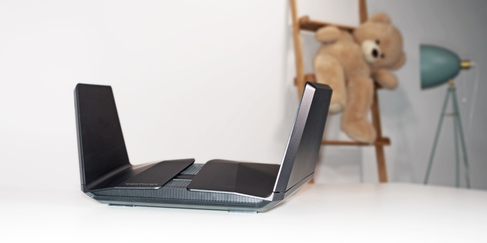Dieser Wi-Fi-6-Router ist ein Koloss, denn er misst an der breitesten Stelle 35 cm und bringt 1364 Gramm auf die Waage. Ob der für grosse Wohnflächen konzipierte Nighthawk auch kolossalen Speed bringt, teste ich in meiner Wohnung.