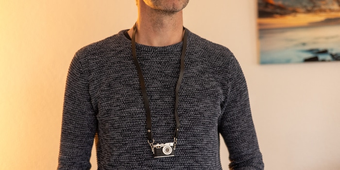 Zum Lieferumfang gehören neben der üblichen Handschlaufe und dem Kabel (USB-C auf USB-A) auch ein Schlüsselanhänger und ein Tragegurt für um den Hals. Was bei einer so winzigen Kamera lustig aussieht. Ebenfalls cool: ein USB-C-Adapter. Da die Kamera so klein und leicht ist, lässt sie sich tatsächlich frei schwebend an einen Ladeadapter anstecken.