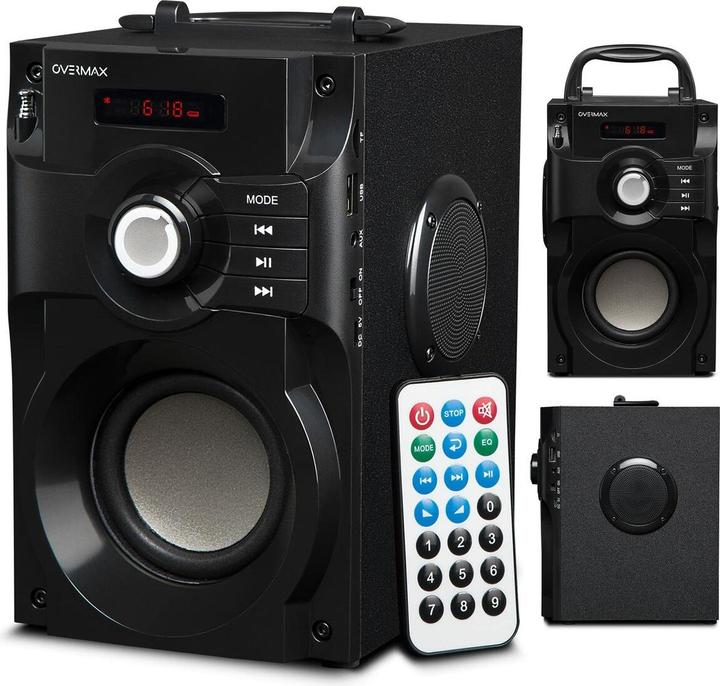Overmax Soundbeat 2.0 Bluetooth-Lautsprecher, USB, SD, AUX-Radio, 15 W, Mini Jack 3,5 mm, 1800 mAh, Fernbedienung, Bluetooth-Konnektivität 2.1+ EDR, MP3-Unterstützung, LED-Anzeige