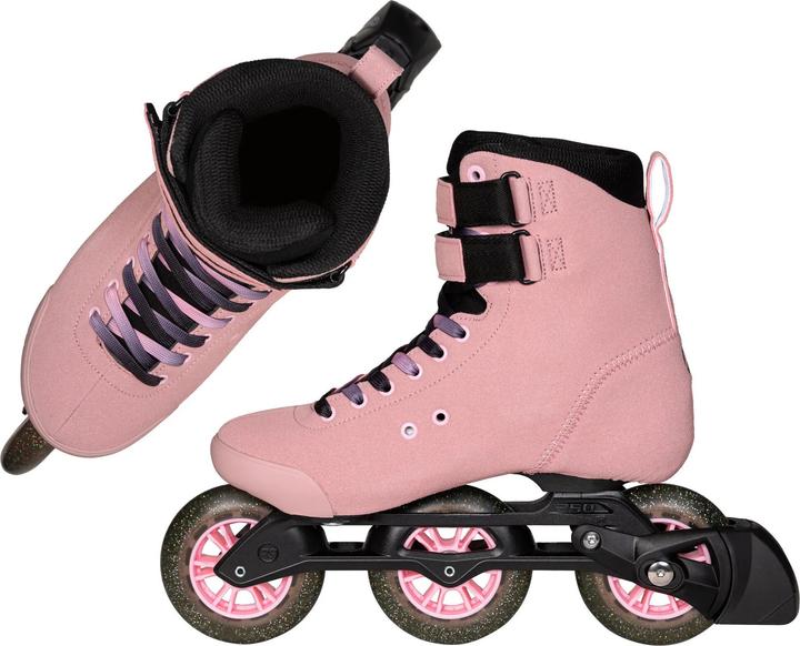 Der POWERSLIDE PHEME Fresa ist ein Inline-Fitnessroller, der für Damen und Menschen mit schmaleren Füssen entwickelt wurde. Er bietet die ideale Mischung aus Stil, Leistung und Komfort. Mit einer engeren Passform als bei klassischen Fitness- und Stadtrollern bietet dieser auffällige, rosafarbene Inline-Fitnessroller aussergewöhnlichen Komfort und Kontrolle in jeder Situation. Der Stiefel ist mit drei Schichten Polsterung ausgestattet, darunter Memory-Schaum, der nicht nur für Komfort sorgt, sondern sich auch allmählich der Form deiner Füsse anpasst, um eine perfekte Passform zu gewährleisten. Selbst an langen Rollertagen sorgt das minimalistische, voluminöse Design des POWERSLIDE PHEME Fresa für müheloses Fahren und bleibt dabei stylish. Die PHEME Roller bieten einen tiefen Schwerpunkt dank des renommierten TRINITY 3-Punkt-Befestigungssystems, das die Stabilität verbessert und Vibrationen reduziert, um dir ein sanftes Fahren selbst auf raueren Strassen und Wegen zu ermöglichen. Zudem kannst du die Position des Chassis mit dem TRINITY-System anpassen, um deine Fahrtechnik besser zu optimieren. Mit einem leichten und robusten Aluminium-Elite-Chassis, schnellen und wendigen POWERSLIDE Cruiser Rädern 3x100mm und flüssigen WICKED Lagern ist dieser grossartige Inline-Fitnessroller auch in städtischen Umgebungen bestens gerüstet. Der Inline-Fitnessroller PHEME Fresa von POWERSLIDE ist die perfekte Wahl, wenn du Stil, Komfort und hervorragende Leistung in einem ansprechenden Paket suchst.