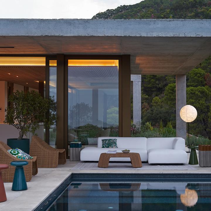 Glänzende Oberfläche, runde Form, glatte Glasur. Der Beistelltisch Glafor bringt mit leuchtenden, kräftigen Farben Dynamik in den Garten. Sein Material, ein Zementverbundstoff, ist kälte- und hitzebeständig. Design by AM.PM.