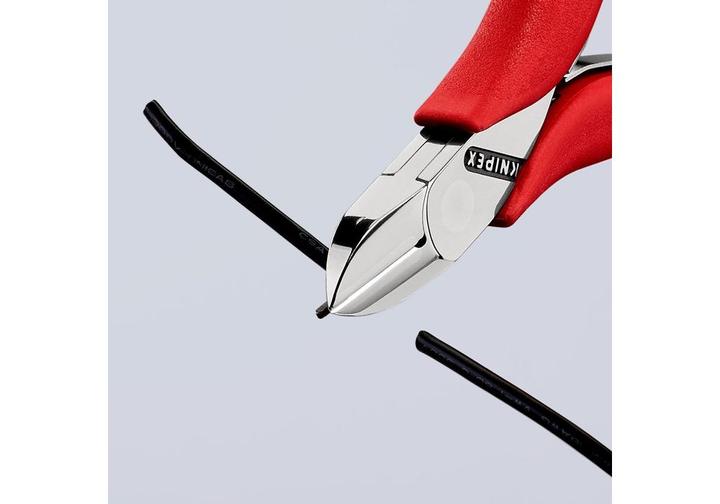 Elektronik-Seitenschneider. Für feine Schneidarbeiten, z. B. in Elektronik und Feinmechanik Belastungsoptimierte Formgebung für ein direkteres Arbeitsgefühl Stabiles, durchgestecktes und spielfreies Gelenk Reibungsarme Doppelfeder für ein sanftes und gleichmässiges Öffnen Schneiden zusätzlich lasergehärtet, Schneidenhärte mindestens 60 HRC Schlanke, zum Zangenkopf hochgezogene Hüllen bieten sichere und komfortable Führung auch zwischen Daumen und Zeigefinger. . Kapazität Halbmond Kapazität mm² Verbindungsvierkant Kapazität Vierkant Kapazität Stufenvierkant Kapazität Dreikant Spannbereich Sechskant Spannbereich Rund Spannbereich Vierkant Spannweite