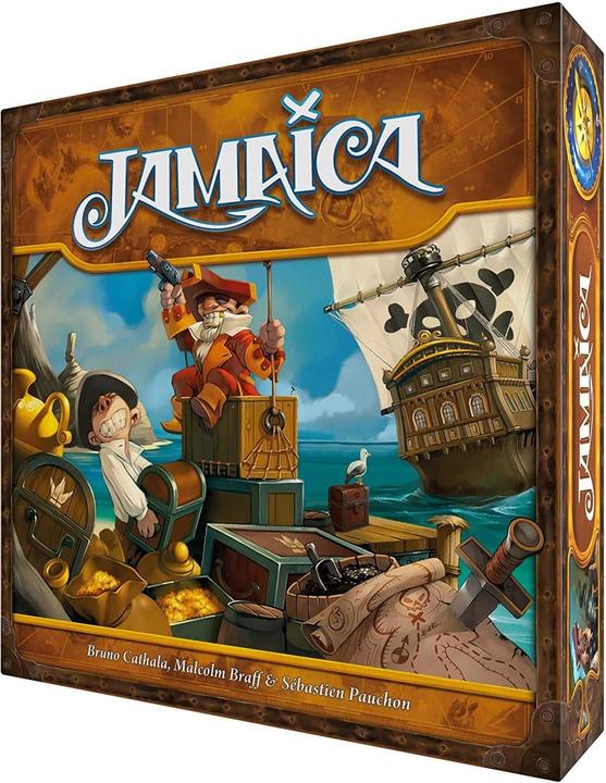 Ein Piraten-Rennspiel für die ganze Familie! Jamaika ist ein Familienspiel mit einfachen Regeln, in dem Taktik und Kanonenfeuer Ihre einzigen Waffen sind, um das Rennen um Jamaika als Erster zu beenden! Also steigen Sie ein, setzen Sie die Segel und seien Sie bereit für die grosse Herausforderung. Wählen Sie Ihre Aktionen morgens und abends! Jeden Tag können Sie entweder segeln oder Ihre Laderäume mit Waren oder Schätzen beladen. Der Würfelwert bestimmt die Stufe jeder Ihrer Aktionen. Stellen Sie also sicher, dass Sie sie auf die bestmögliche Weise verbinden. Bewegen Sie sich um die Insel! Bewegen Sie Ihr Schiff vorwärts, entdecken Sie fabelhafte Schätze und nutzen Sie Ihre Ressourcen mit Bedacht. Manchmal müssen Sie in Dublonen oder Waren bezahlen, um Zugang zu einigen Feldern zu erhalten. Entscheiden Sie sich dafür, zu bezahlen … oder erleiden Sie schreckliche Engpässe, die Ihr Rennen verlangsamen werden. Greifen Sie Ihre Gegner an! Wenn Sie Ihre Bewegung auf einem Feld beenden, das von einem Gegner besetzt ist, müssen Sie in einen Kampf verwickelt werden. Stellen Sie sicher, dass Sie das Schiesspulver während der Kämpfe zu Ihrem Vorteil einsetzen. Würfeln Sie und besiegen Sie Ihre Gegner, um deren Waren und Schätze zu stehlen. Aber seien Sie nicht rücksichtslos; andernfalls werden Sie geplündert. Finden Sie Schätze … Erkunden Sie die Verstecke der Piraten und legen Sie sagenhafte Schätze frei, die Ihnen während des Rennens Boni einbringen: Kampfvorteile, zusätzliche Griffe, mehr Aktionsmöglichkeiten … aber hüten Sie sich vor verfluchten Schätzen. Und seien Sie siegreich! Wenn ein Spieler Port Royal erreicht, beenden die Spieler die aktuelle Runde. Dann zählt jeder seine Punkte gemäss der Position seines Bootes und den verschiedenen Schätzen und Dublonen, die er hat. Wichtig: Übermässige Verspätung oder der Besitz verfluchter Schätze kosten Punkte. Der Spieler mit der höchsten Punktzahl gewinnt das Spiel!.