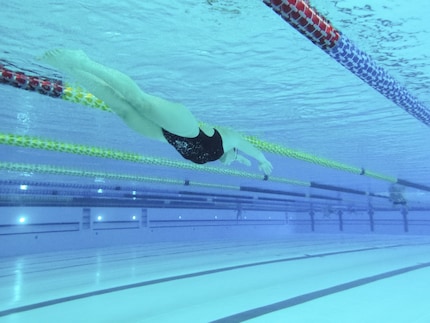Underwater shots are theoretically possible. Practically, however, the camera is just too slow. Svenja had to dive off the starting block ten times before Tom got a shot with her fully in it. We didn't even want to start with finer details such as a sufficiently short exposure.