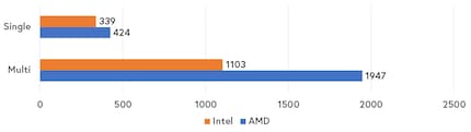 Cinebench R20 is a benchmark based on a programme for creating 3D content and shapes called "Cinema 4D Suite". In multi-core mode, Cinebench accesses all CPU cores and makes great use of hyperthreading. In single mode, this is irrelevant. The result is clear: regardless of whether one or all computing cores are required, the AMD variant comes out on top.