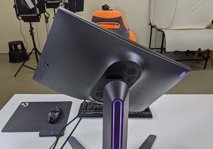 The Alienware monitor has a plain, matt black casing. The display edges are incredibly narrow and there is little to notice on the front. On the back, in addition to the iconic Alienware logo, the entire stand lights up in freely selectable colours. Colour gradients are also possible. You can set both via the OSD menu or via the Alienware Command Centre software. Even after the fourth driver update, the software wouldn't recognise the monitor. Be that as it may, it works without it.