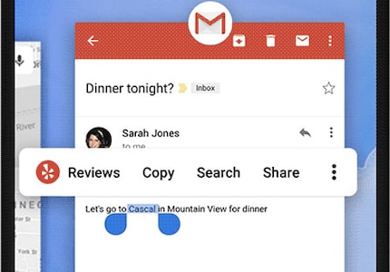 In addition, the text selection, also in the All Apps screen, should become smarter. If you select a word when you want to copy it or something, the context menu will not only suggest copying the word, but also actions that could help you. If you highlight the name of a restaurant, the menu will suggest that you read reviews for the establishment on Yelp.