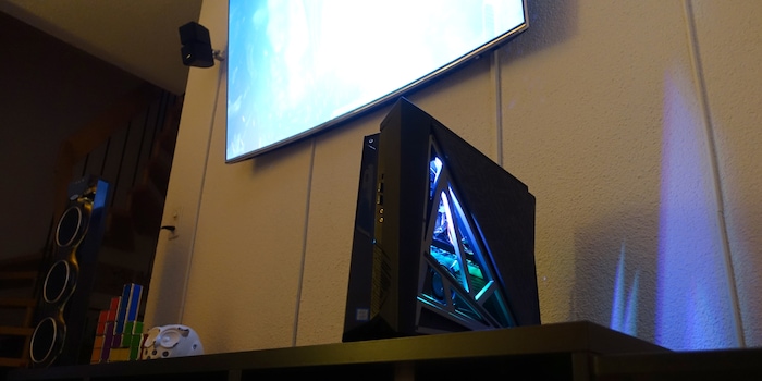 May I introduce; the housing of the Asus ROG Huracan can be opened halfway on the right-hand side during operation, whereupon the compact gaming PC automatically upclocks itself and provides additional performance. How much exactly will be revealed by the test. I tested the small gaming tower in my living room and had a lot of fun finally being able to play on the big TV away from the PS4 Pro again.