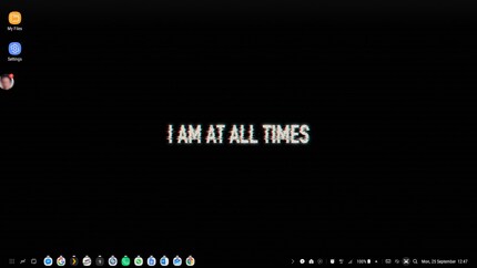 The DeX desktop with a quote from Henry RollinsThe desktop is tidy and minimalistic. What’s really cool is that all the apps I had open on the Note 8, which you could see when you pressed the □ button, were stored in the equivalent of the taskbar in Windows. The notification area and everything else was stored on the bottom right. I was able to customise my desktop image and choose photos from my photo album. I selected AMOLED-compliant wallpaper, as I wasn’t too keen on the purple Galaxy hues DeX was offering.