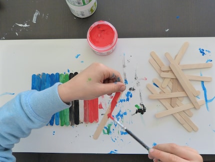 Your children can start by painting the popsicle sticks different colours. If you don't have enough colour or time, you can also paint just one side of the sticks.