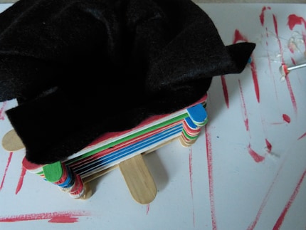 For the cosy inner part, lay out the felt on the inside and glue the edge to the topmost popsicle sticks. To finish and as a kind of railing for the birds, glue on another round of popsicle sticks.