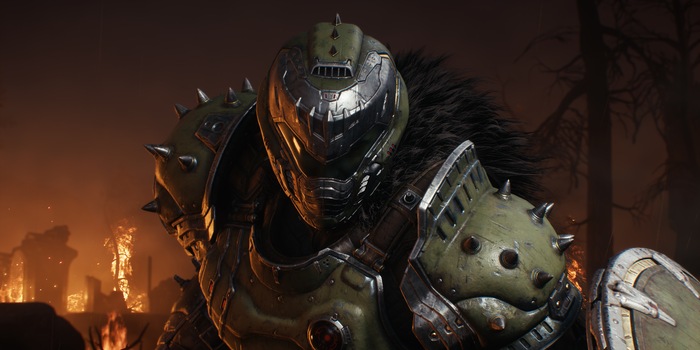 The Doom Slayer’s back, roughing up hordes of demons with the help of a dragon, a mech and a shield – not that he’s hiding behind it.