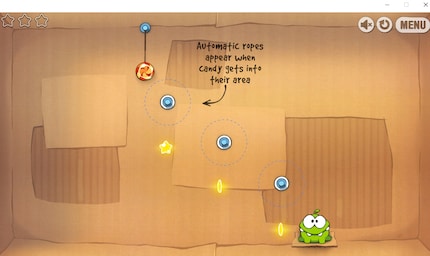 The little monster Om Nom is hungry. The only problem is that someone has hung up the sweets that Om Nom lives on. Players have to cut the strings in the browser game Cut the Rope to feed Om Nom.