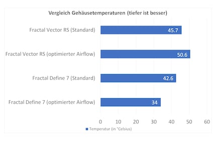 How the Define 7 compares to the Fractal Vector RS. You'll be reading this review in the next few days. For a better comparison, I will use the results of the most closed configuration and the most open configuration in the case with Nocuta fans.