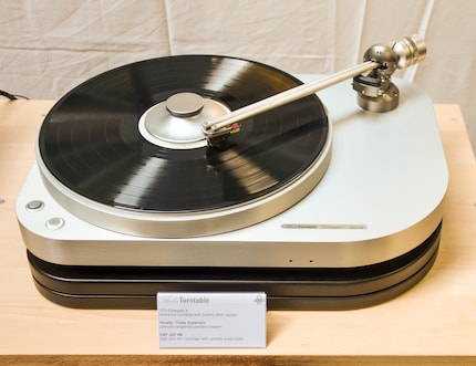 Swiss company Thales was showing off a superb turntable. A jewel of technology lies behind this relatively sober design, not least the very elegant shape of the tone arm.