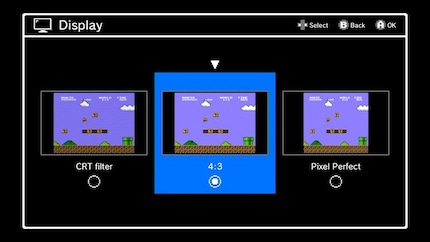 On the Mini you have the choice between three picture modes: CRT, 4:3 or original resolution. The names are somewhat misleading, as only original resolution (256x240 at the time) is not in 4:3 format. CRT adds a filter that makes the picture look artificially worse. Original resolution shows pixels almost too sharp and a smaller image. I left it on the default settings and the picture looks the most balanced.