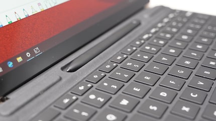 I really like the new Type Cover with integrated Surface Slim Pen. The pen can be stored directly in the cover and is also charged via induction. This means there is never any risk of a flat battery. When tested, the pen fits comfortably in the hand despite its flat shape. Handwritten notes can be created just as easily as entries translated directly from handwriting in Office programmes.
