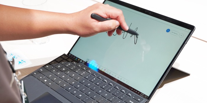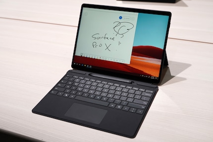 It weighs less than 800 grams, is 7.3 millimetres thin and has a 13-inch display (2880 × 1920 pixels), which comes in a 12-inch format thanks to its narrow edges. This makes it the same size as the Surface Pro devices without the X. What is surprising about the fanless product is that it is not powered by an Intel processor, but by an ARM chip called SQ1 developed with Qualcomm.
