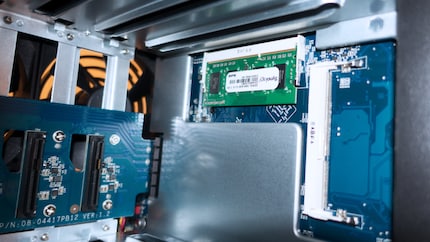 I start by installing the extra RAM - that gives me a total of 8GB. If you want to upgrade your Synology, it's important to use its original RAM. If you insert anything else or touch the already installed RAM strip, your warranty expires. The only question is whether anyone checks this in case of damage. In short, put in what you want. However, I made a conscious decision to go for the original RAM, certainly a stroke of the good student in me. Next up, check out my experience of OverRAMing.