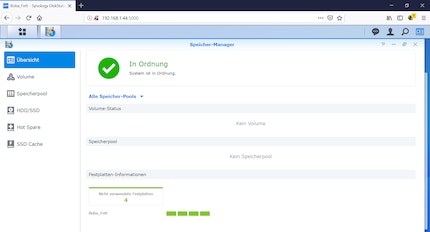 You can now access your NAS via a web browser. To do this, simply enter the IP address of the NAS and wait one to two seconds. If you don't know the IP address, you can find it by going to "find.synology.com". Alternatively, you can connect to your router to find it. It's also a good idea to assign a fixed IP to your new NAS in the router, as I did. That way, I no longer need find.synology.com and can still connect to the 192.168.1.44 IP.